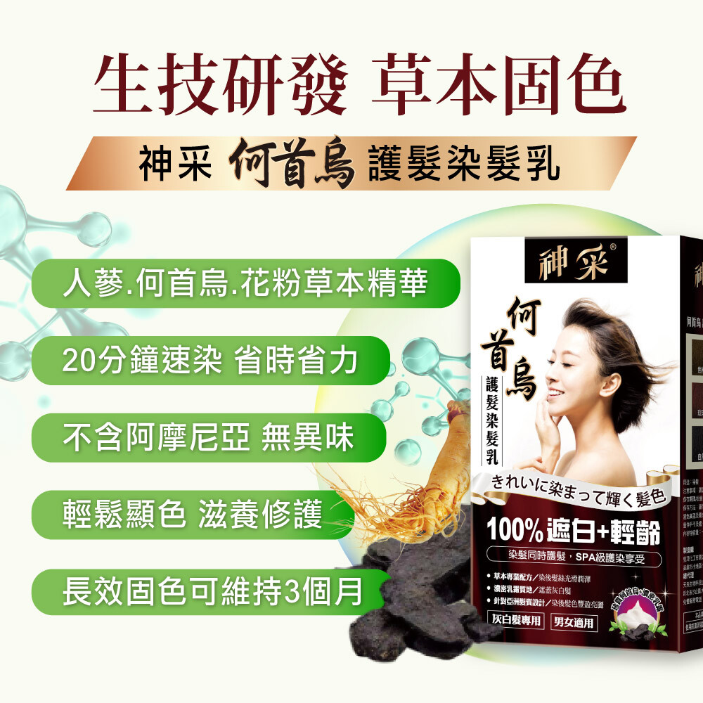 ▸珍貴何首烏,濃密乳霜質地,遮蓋住灰白髮