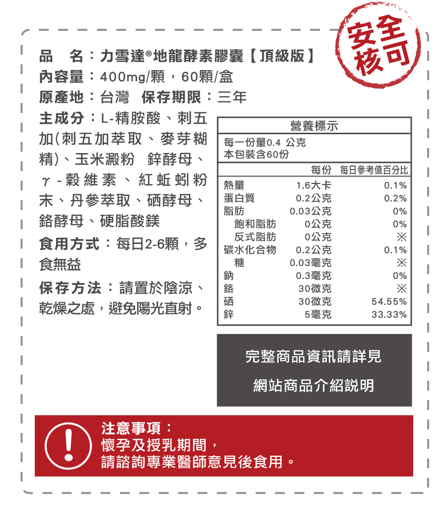 ▶ 力雪達®-專利地龍酵素,為專利地龍粉末(紅蚯蚓酵素)