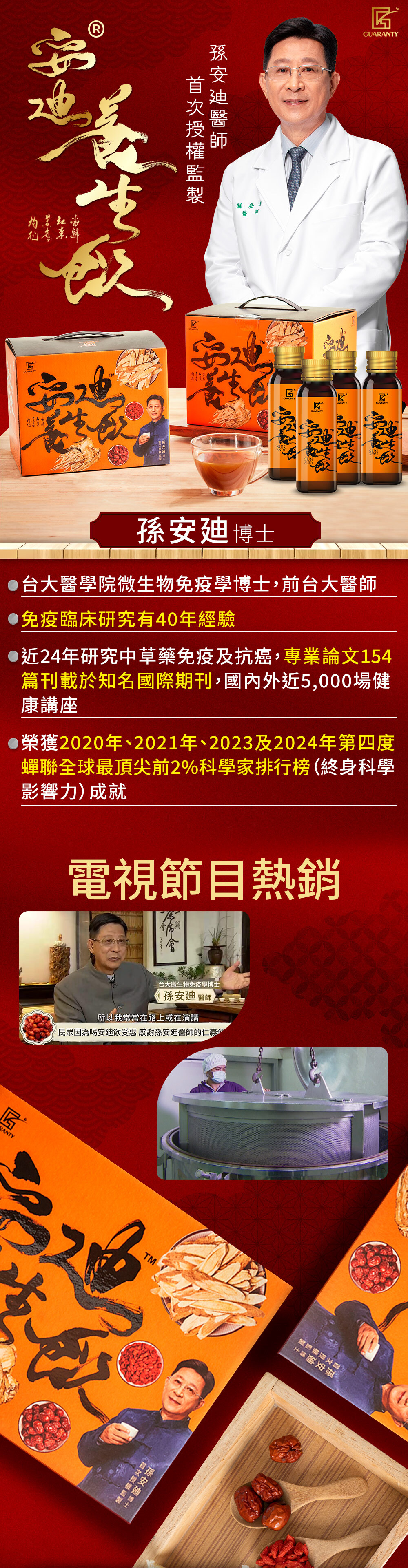 ▶正宗孫安迪®養生飲:孫安迪博士首次授權全程監製。