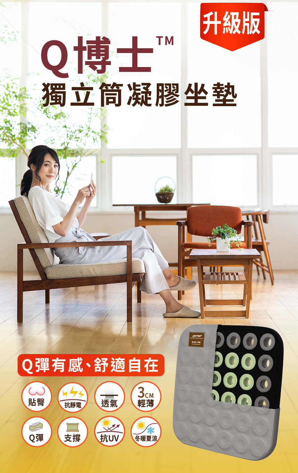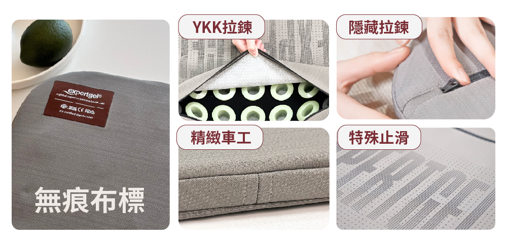 導溫混配技術製成生物凝膠彈簧結構,類記憶特性及支撐減壓雙效進行,具壓力釋放、動態調節,快速散熱,氣流交換、抗靜電。