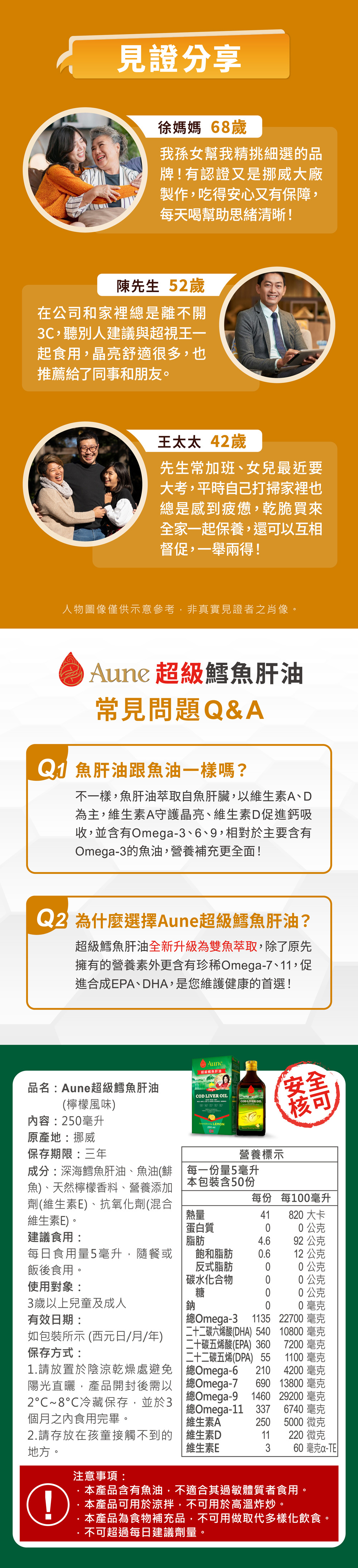 贈送:Aune超級鱈魚肝油5包/盒(5毫升/包)*1
