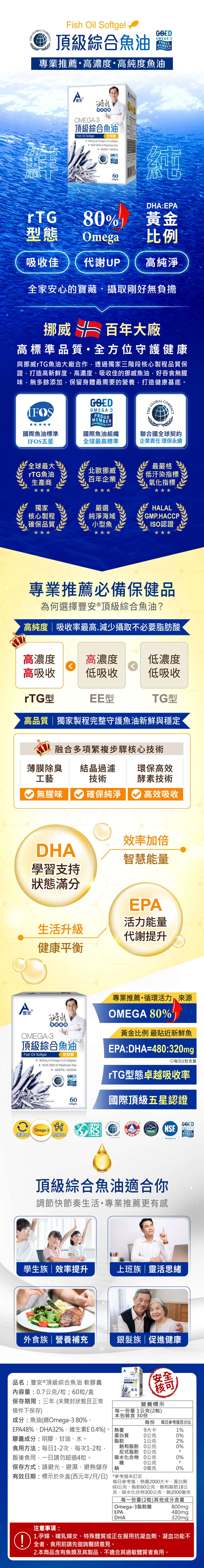 ▸挪威rTG高純淨魚油,好吸收