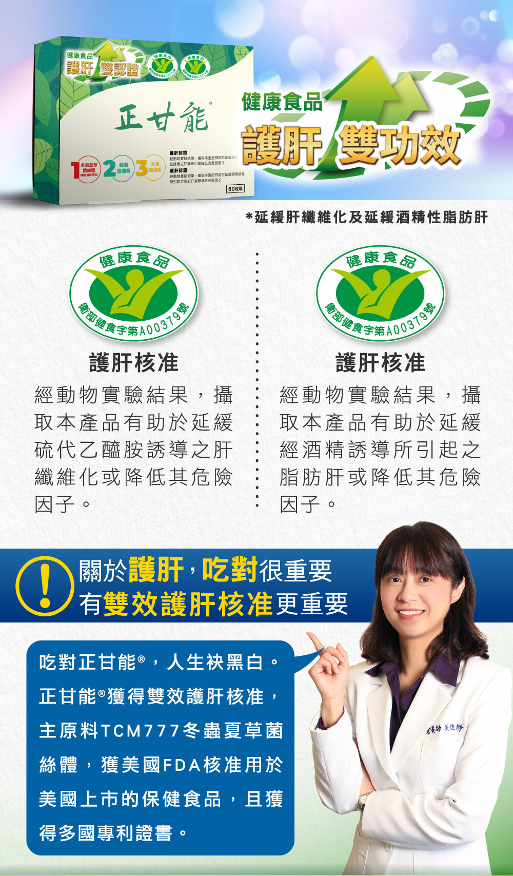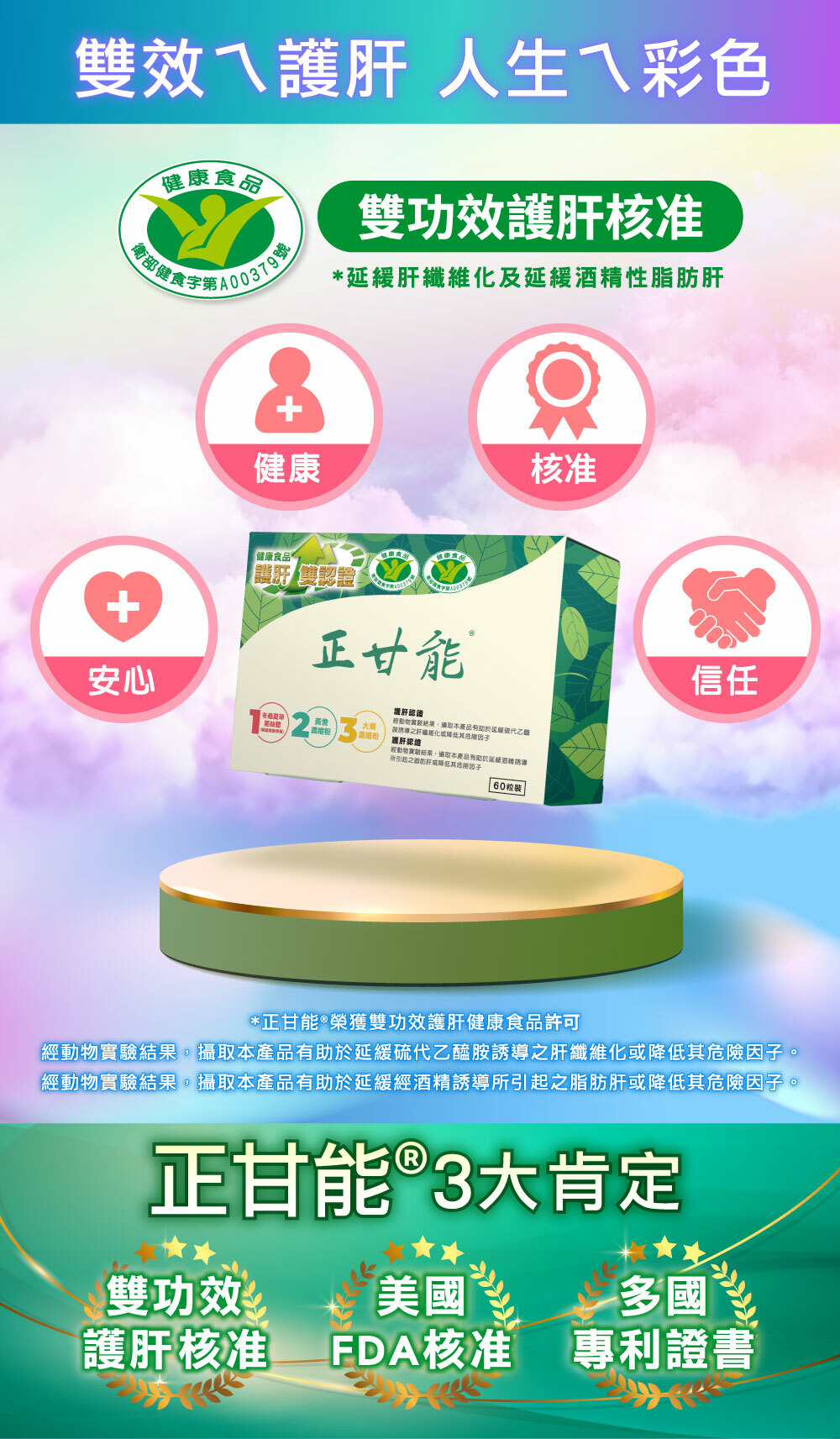 ▶ 正甘能®從根本調理,獲得護肝核可之健康食品