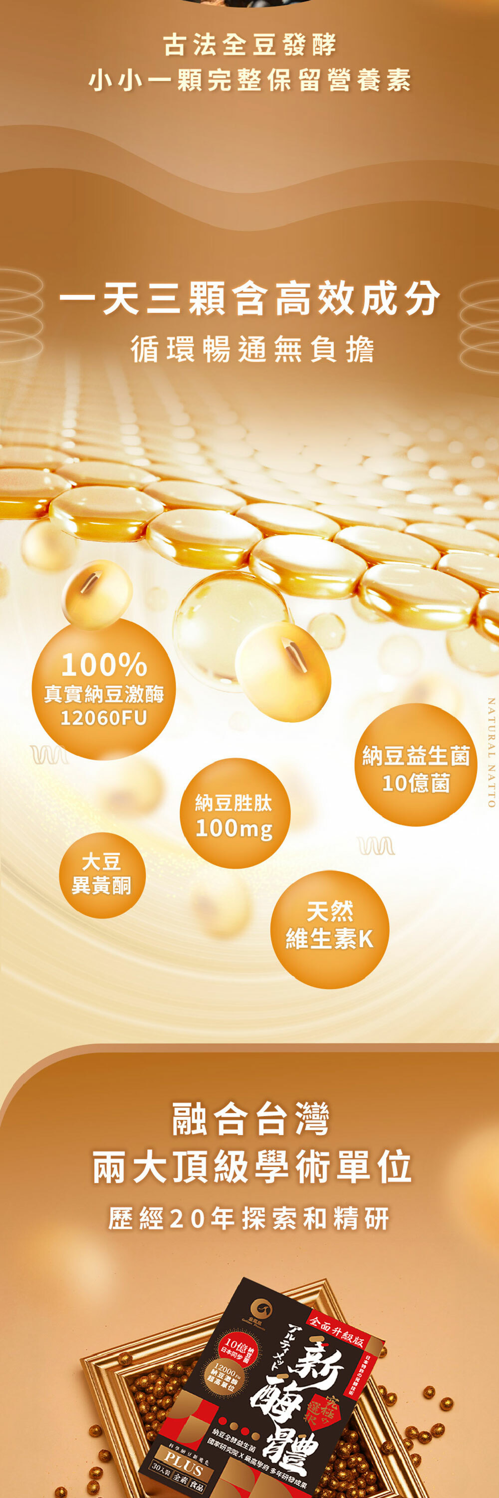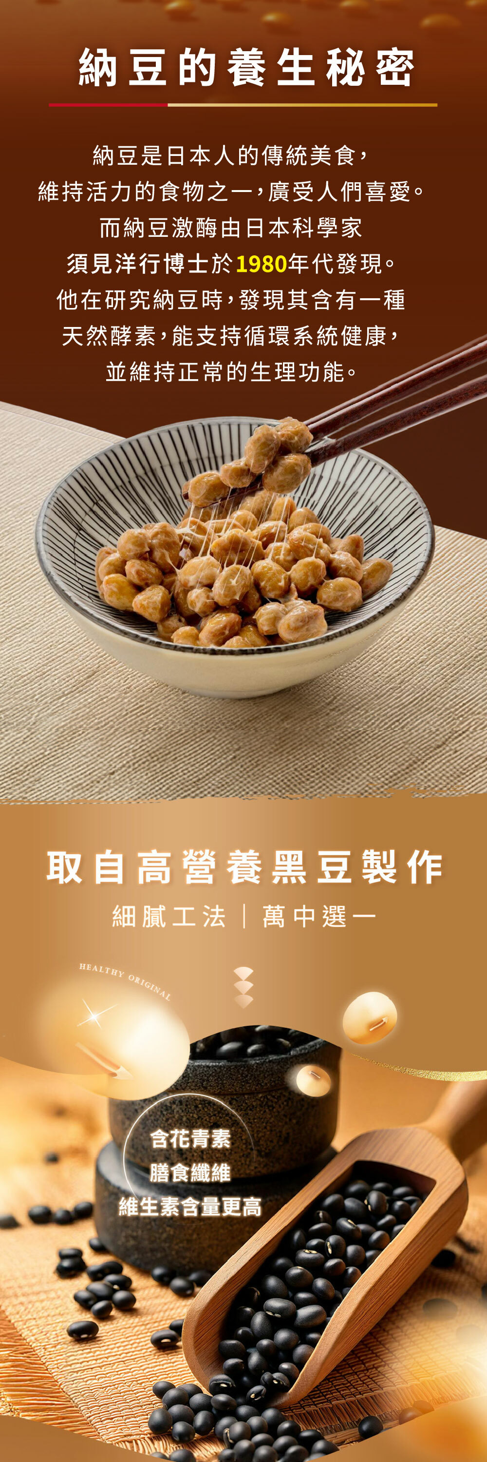 ▸市售唯一兼具納豆激酶+納豆益生菌+納豆胜肽+維生素K的科學納豆