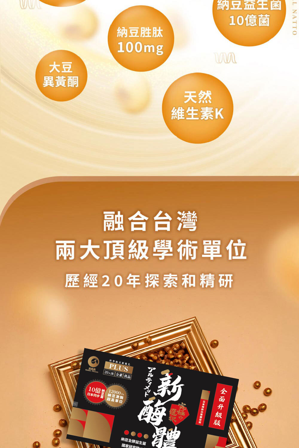 ▸市售唯一兼具納豆激酶+納豆益生菌+納豆胜肽+維生素K的科學納豆