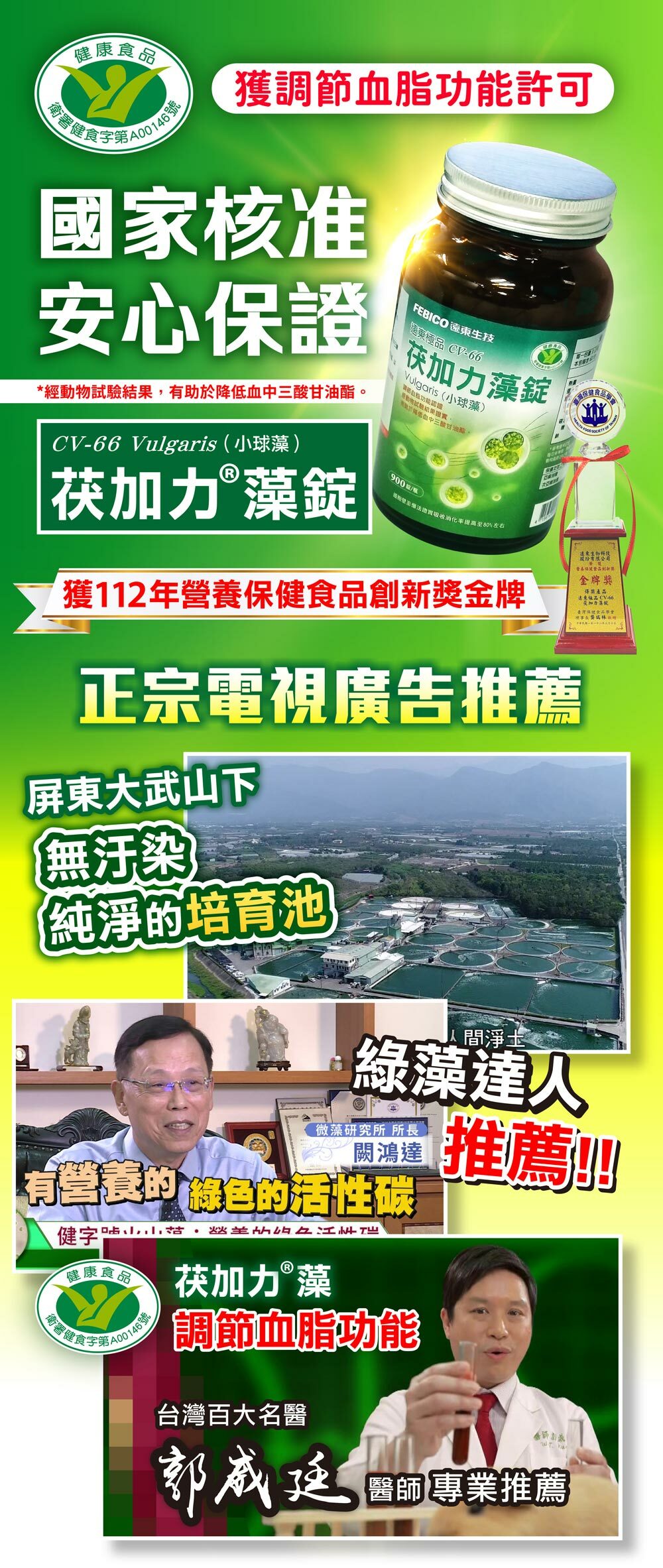 ▶ cv66茯加力®藻錠/微藻/小球綠藻錠,能降低三酸甘油酯