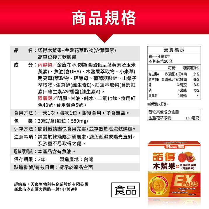諾得木鱉果+葉黃素 軟膠囊EX PLUS版 20粒/盒 |